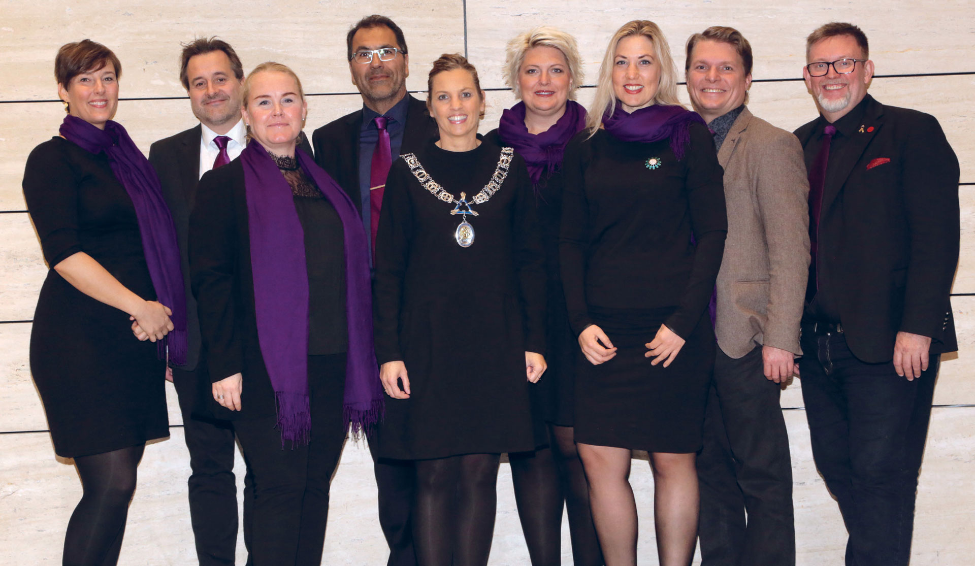 NTFs hovedstyre 2018-2019. Fra venstre: Ellen Holmemo, Terje Fredriksen, Benedicte Heireth Jørgensen, Farshad Alamdari, Camilla Hansen Steinum, Ingvild Nyquist Borgeraas, Mette Helen K. Johansen, Ralf Husebø og Heming Olsen-Bergem.