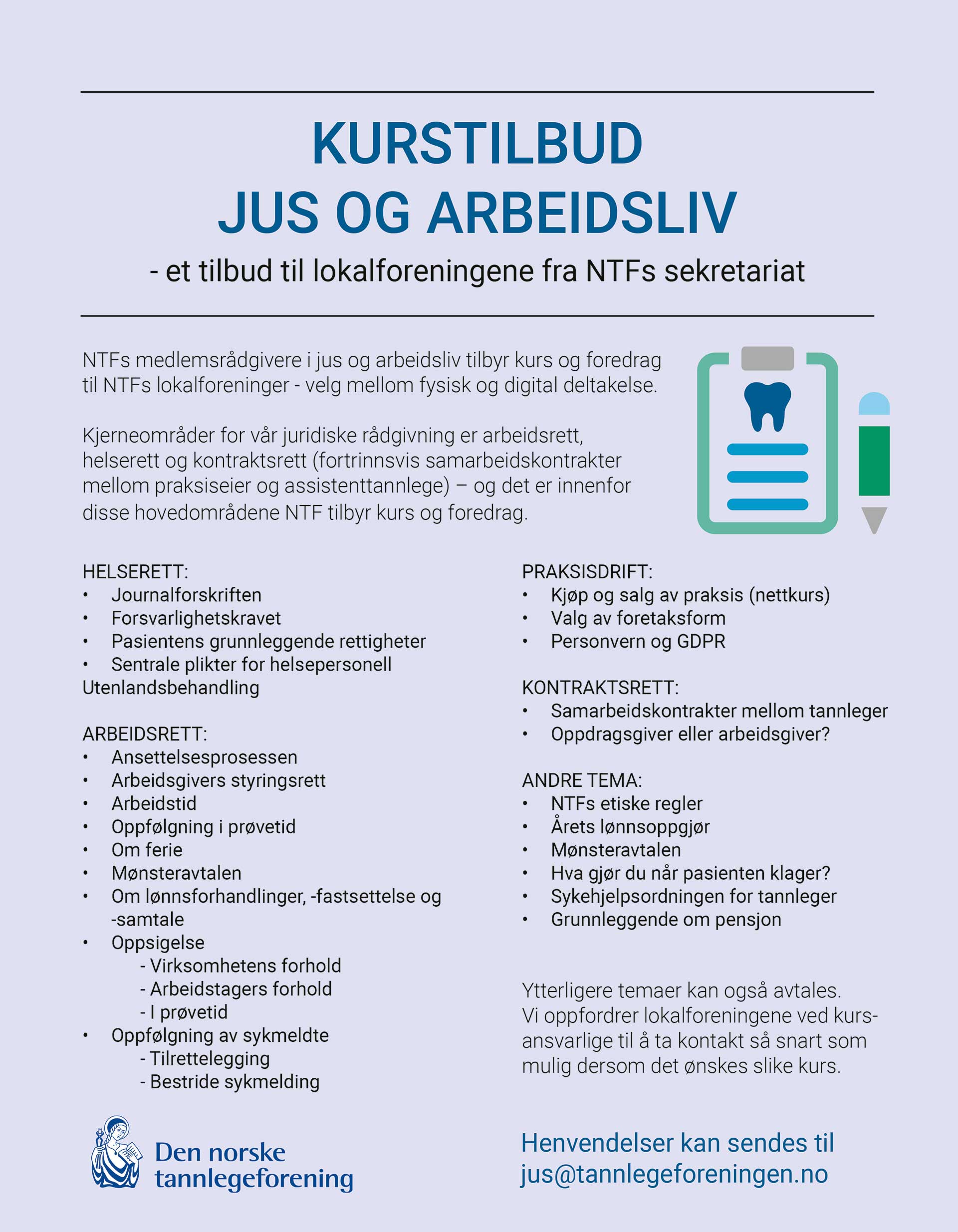 Kurstilbud - Jus og arbeidsliv