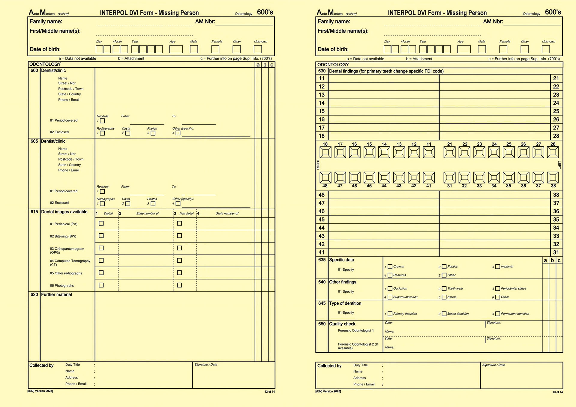Figure 1. INTERPOL's standardized form for registering of dental ante mortem data.